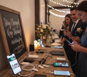 V dnešní době se fotí, natáčí a sdílí ostošest. Vybitý telefon uprostřed focení momentek je noční můra. Malý stolek s různorodými nabíječkami (USB-C, Lightning) a powerbankami zajistí, že hosté budou mít stále „šťávu“ na další selfíčka.