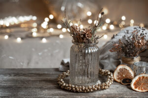 Zimní dekorace působí luxusně, elegantně a mají fantastický vizuální efekt. Kombinace bílé, smetanové, smaragdové, stříbrné, zlaté nebo vínové vytváří slavnostní a romantický dojem. Navíc můžete využít: